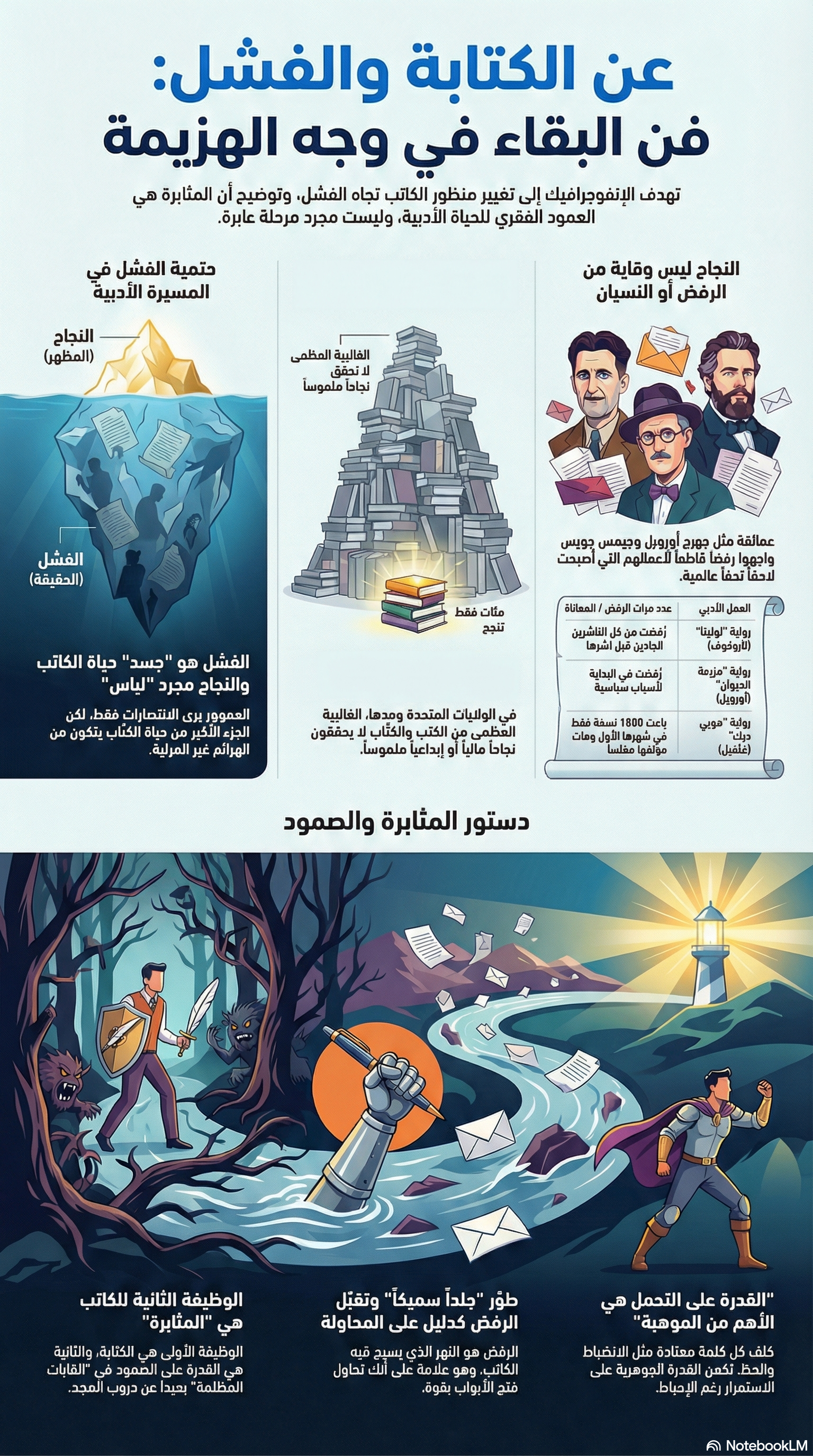 هذا الكتاب ليس فقط للكتاب الطموحين، بل لكل من يسعى إلى فهم التحديات الحقيقية الكامنة وراء أي إبداع إنه دعوة صريحة لتحويل الفشل إلى قوة دافعة ولإدراك أن النجاح لا يتحقق إلا بعد اجتياز طريق مليء بالعثرات.
